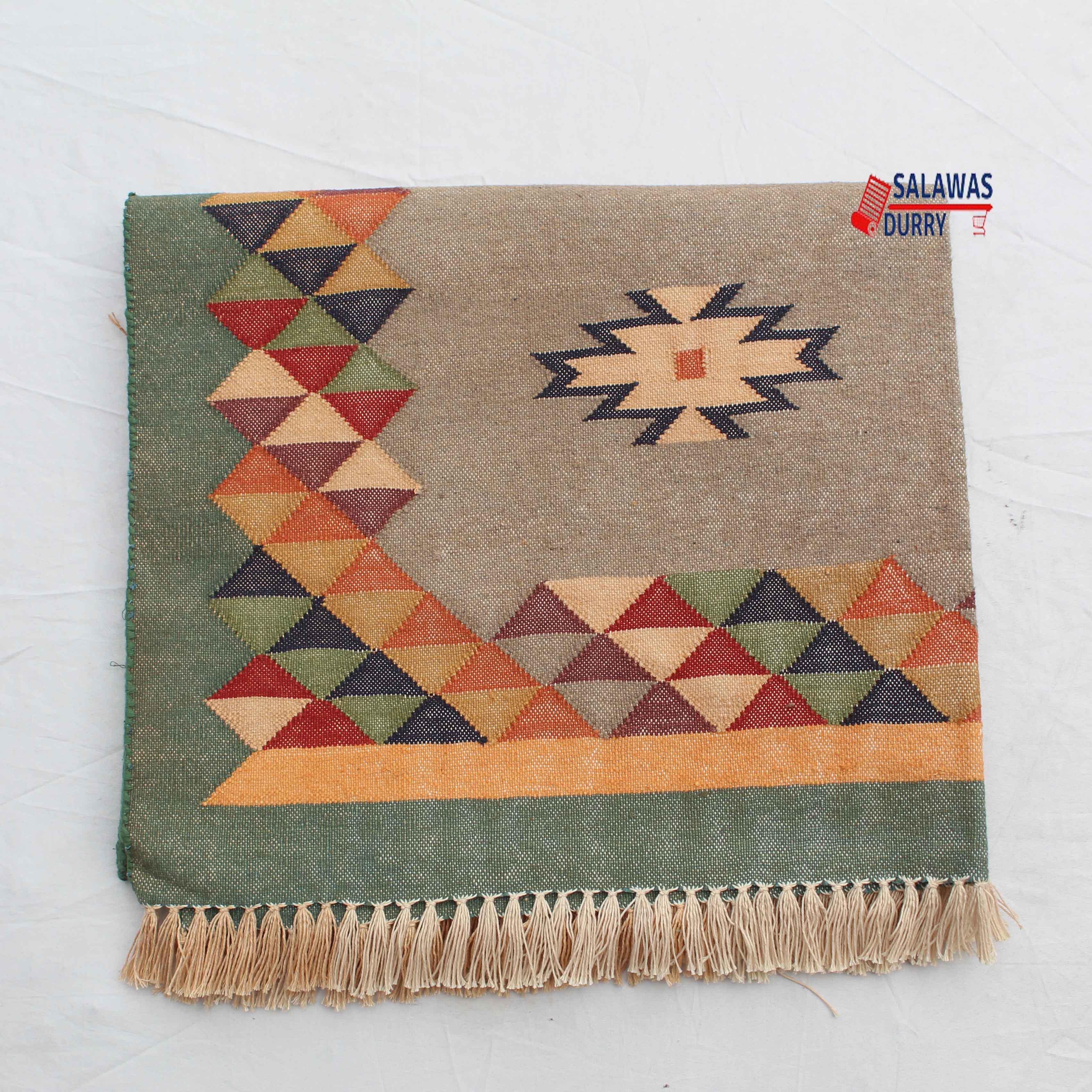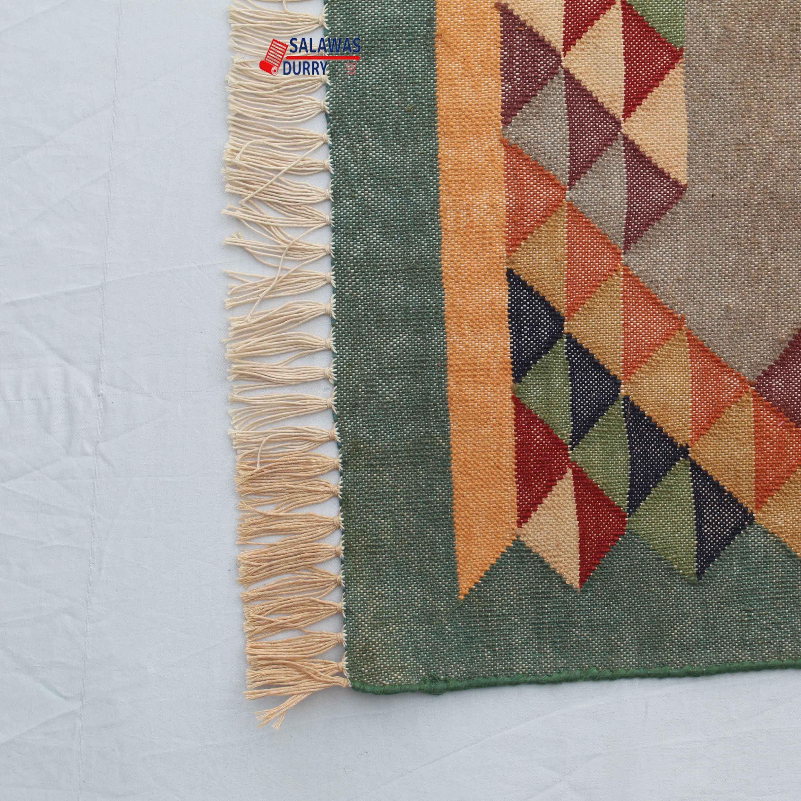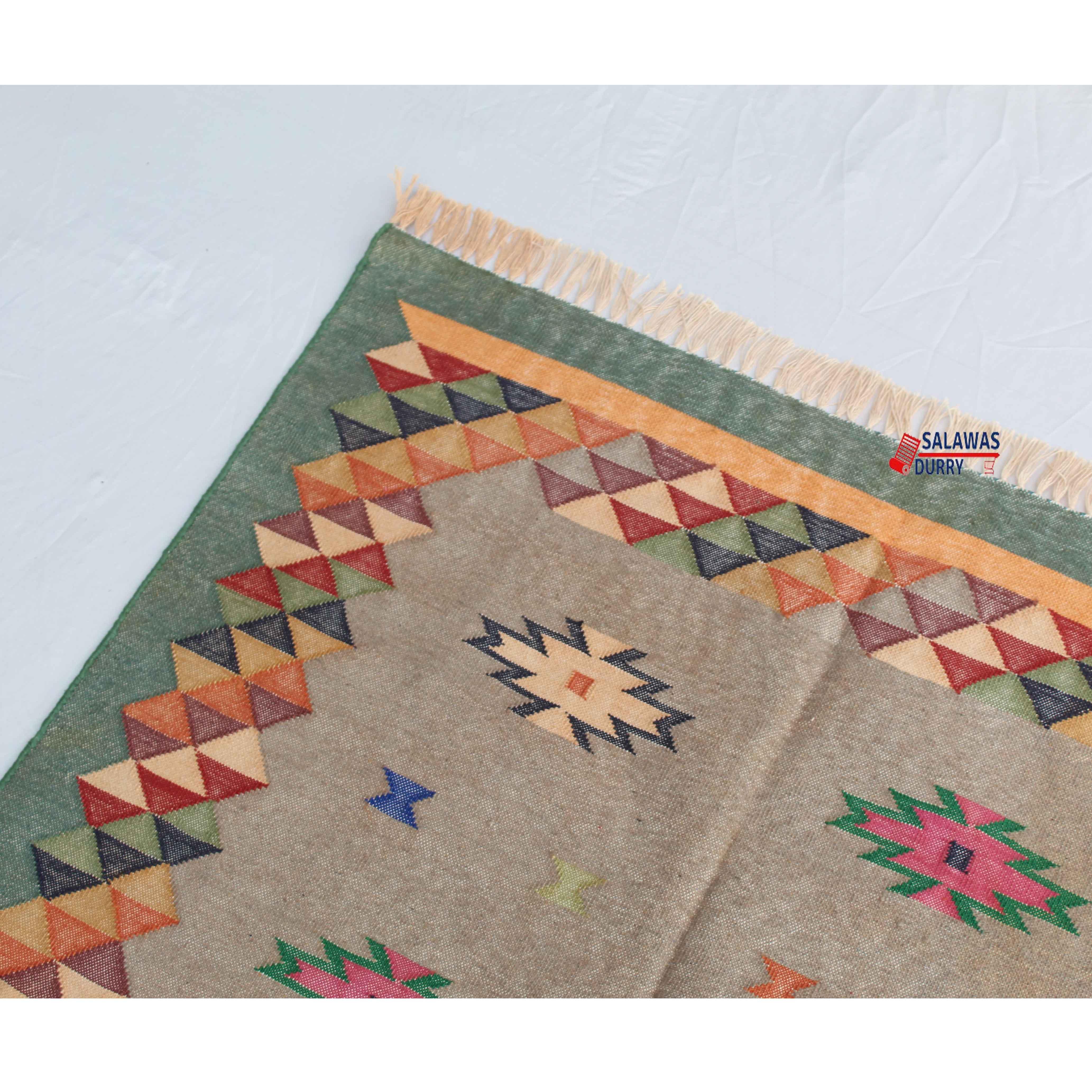 This hand-woven rug is designed to enhance your living space with its unique charm and colorful patterns. Place it in a prominent spot to instantly uplift the aesthetics of your room. This rug can also be used as a cozy centerpiece or an accent piece to tie together various elements of your decor.